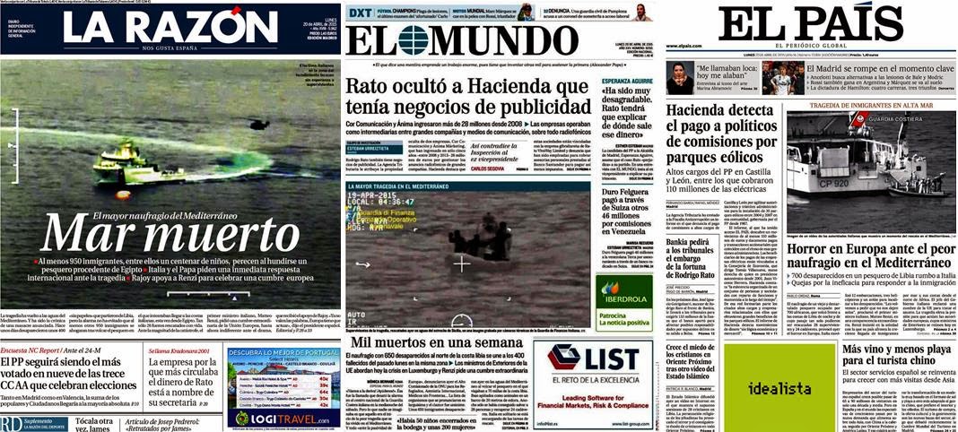 Si echamos un vistazo a la prensa de Madrid de ayer ya se ve que el índice asociado al naufragio del barco de los inmigrantes oscila entre algo mas de 0,8 en La Razón y un poco menos de 0,5 en El País.