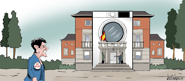 El hermanísimo, que así le denominban en alguno de los correos desvelados, tan solo comparecía ayer en la viñeta de Tomás Serrano. Santiago Abascal era el protagonista de la tira de JL Martín y Mazón, por cansina enésima vez, de la de Peridis. Ortifus también le convertía en elíptico punto focal de su dibujo.