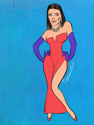 Pasamos a recordar la caricatura de Nieves Álvarez incluida en la galería de Tomás Serrano para 'El Bestiario' de Carmen Rigalt en El Español del pasado domingo. Una imagen de Jessica Rabbit dejará clara la cinematográfica evocación a los menos aficionados al cine.