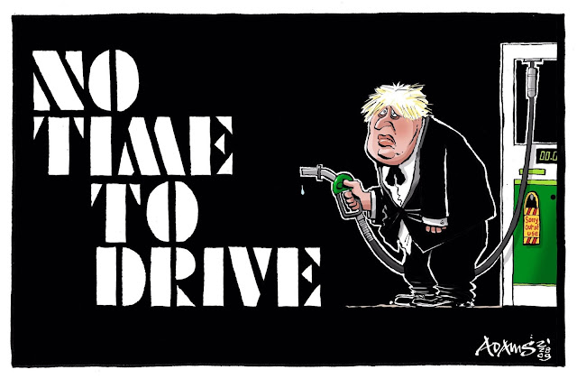 Proseguimos con Graeme Bandeira que convirtió 'Licence to Kill' (1989) en 'Licence to fill?' (¿Licencia para llenar?) en The Yorkshire Post.Debajo otro 'No time to drive', este de Christian Adams en el Evening Standard del martes y 'No time to panic buy' de Steven Camley en el diario escocés The Herald de esa misma jornada en que tuvo lugar el estreno.