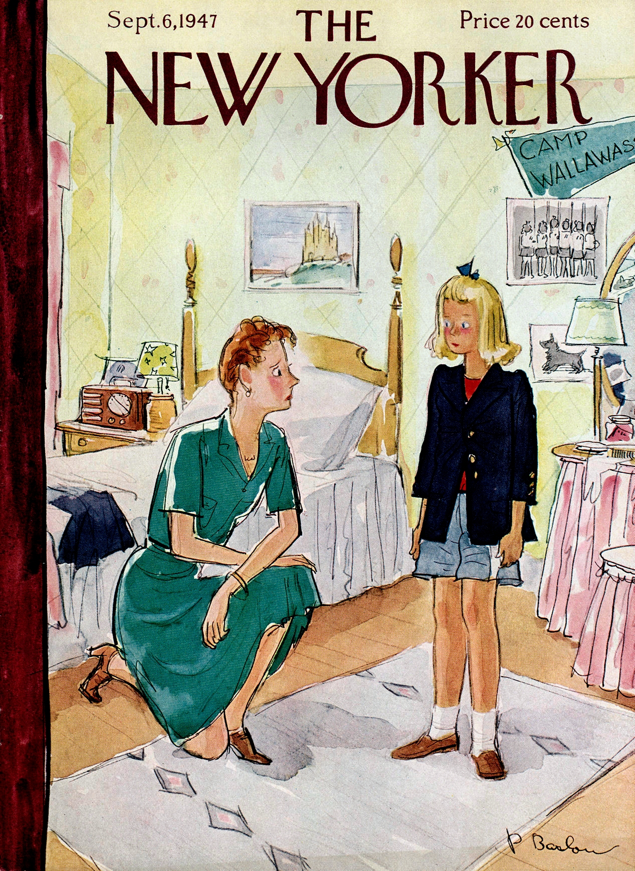 Una escena típica de los preparativos de vuelta al cole es la muy habitual constación de que la ropa del curso anterior se ha quedado pequeña, que es la común temática de "Growing Boy" (16/9/1939) de Frances Tipton Hunter y de la posterior visión de Perry Barlow (TNY, 6/9/1947).