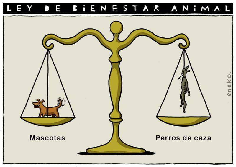 La exclusión de los perros de caza (que en realidad afecta a todos los de trabajo, incluidos los de la policía) de la Ley de bienestar animal coleaba en la viñeta de Ángel Idígoras en Sur y también en la que publicaba en El Mundo junto a su hermano Pachi.
