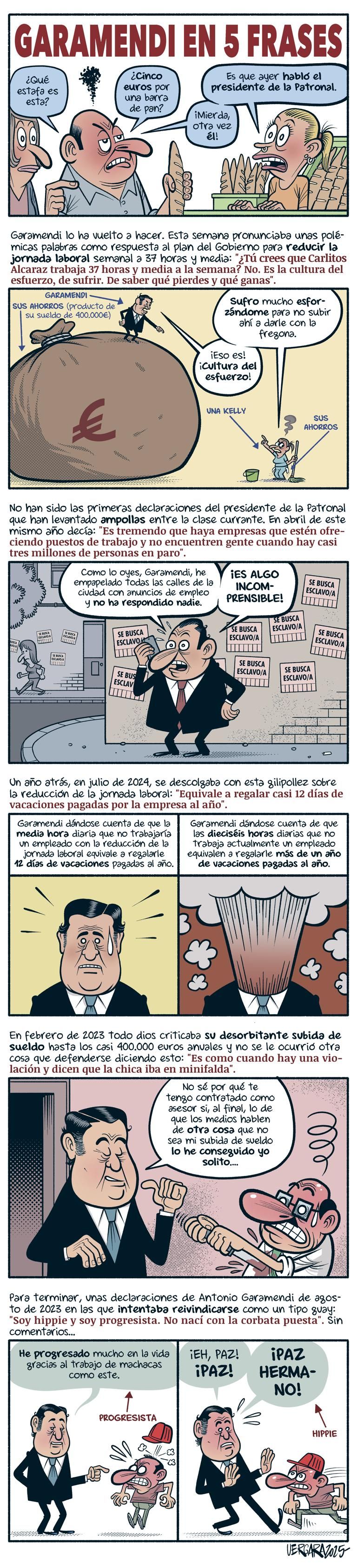 Fontdevila escenifica una típica carrera política y su compañero Vergara dedica la tira de eldiario.es a Garamendi. Nos hemos traído un risible ejemplo del nivel del argumentario. Sigue el genocida aldabonazo de JM Esteban y la visión de Javi Salado de la proverbial inutilidad de la Onu.